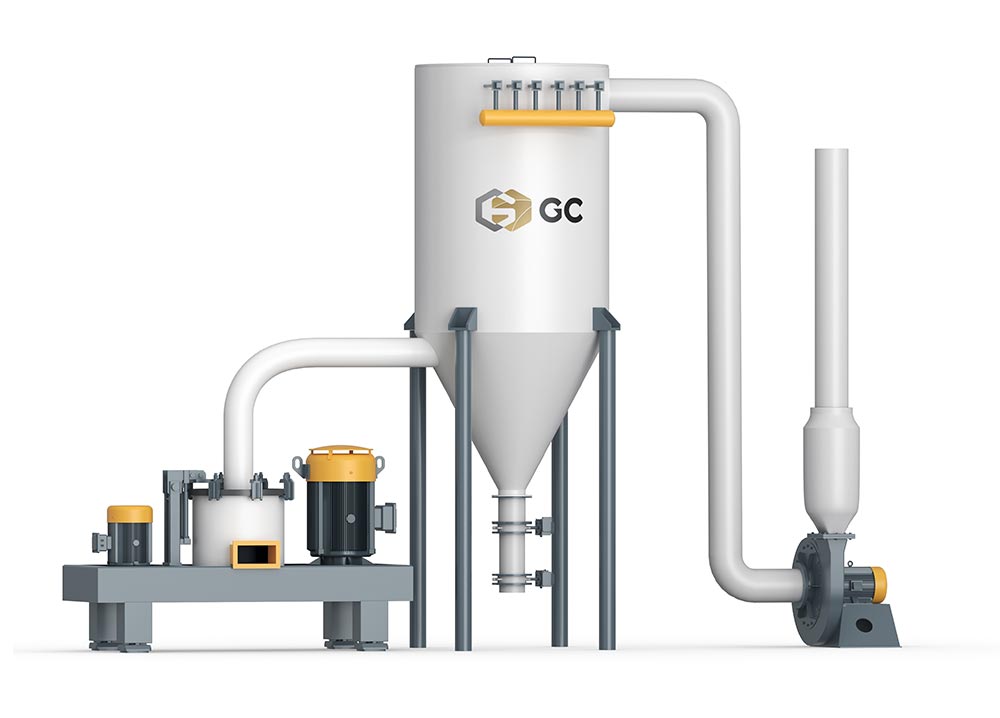 - Zwei-in-Einer-Welle von Mahlscheibe und Sichtrad, kompakte Bauweise.